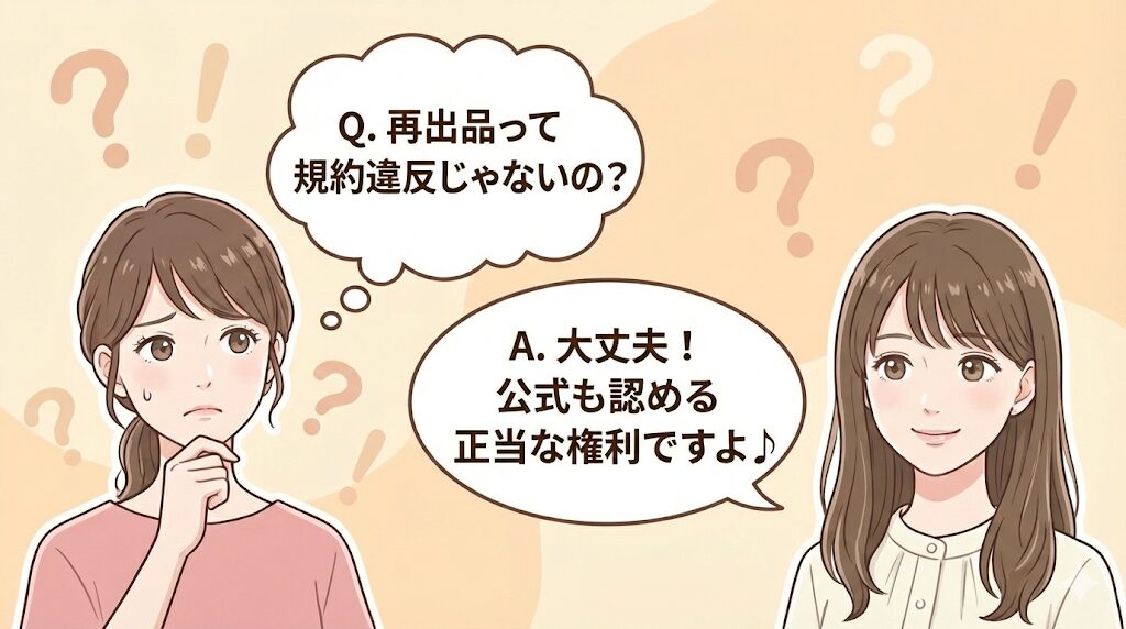 実際には、メルカリ事務局も再出品を公式に認めており、通常の範囲内であれば問題ありません。