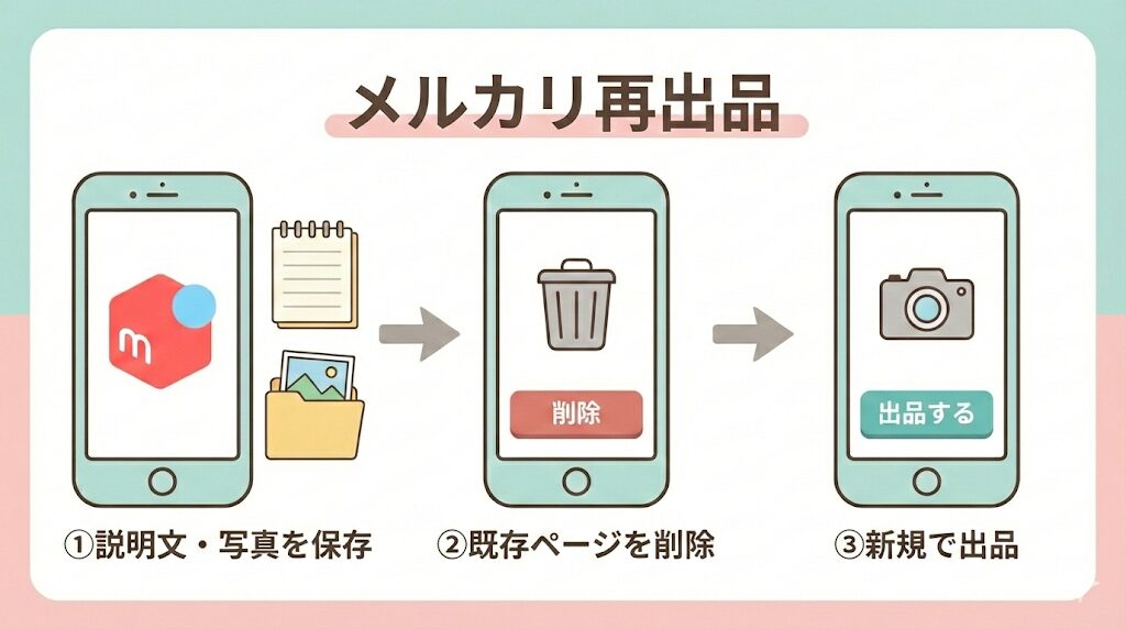 メルカリの再出品は、やみくもに繰り返すと不安が増えてしまいます。