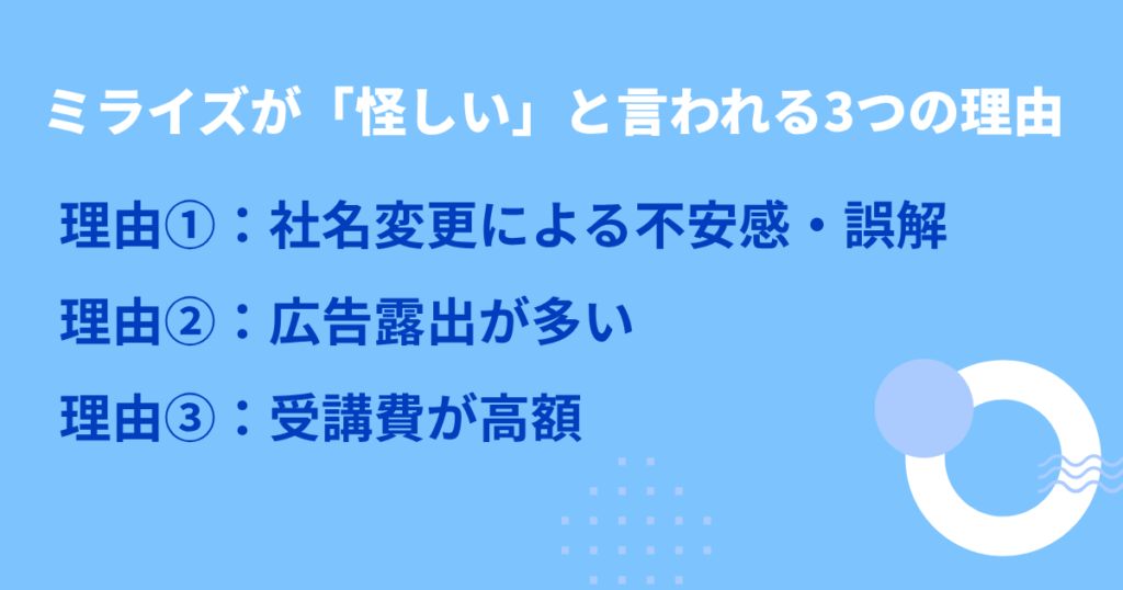 ここでは、ミライズが「怪しい」と言われる主な3つの理由を整理し、それぞれの背景と実情を確認していきましょう。