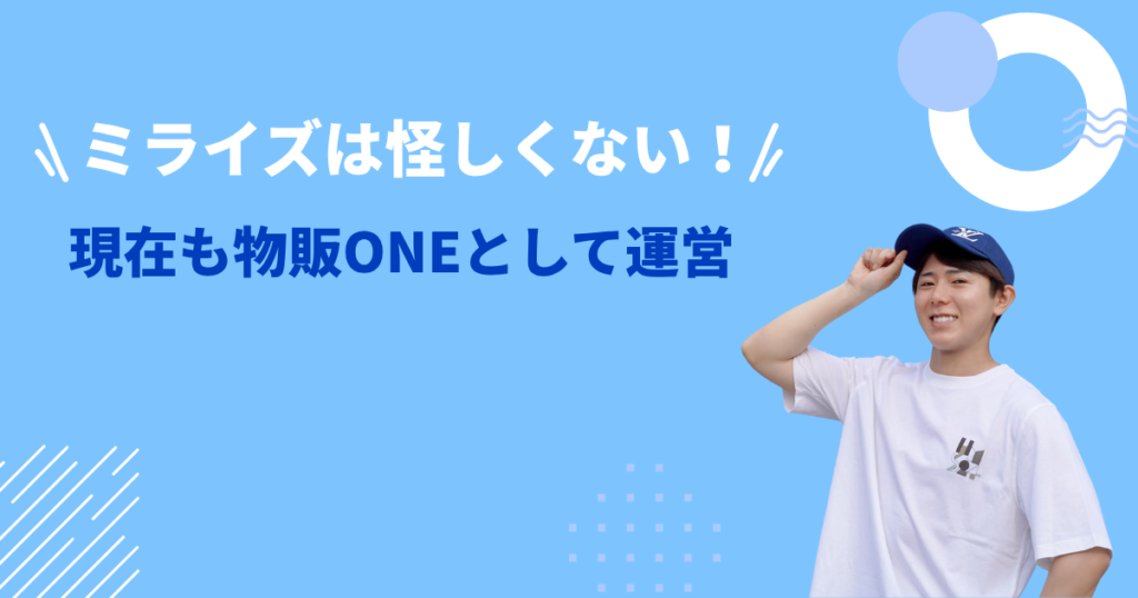 また、ミライズから物販ONEへの移行後も、運営母体・代表・サービス内容はいずれも継続しています。