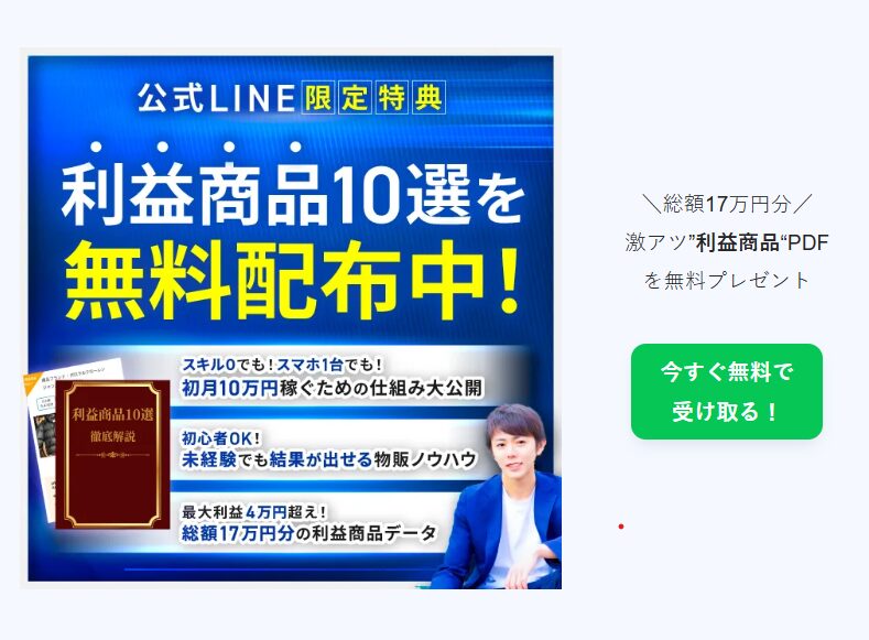物販ONEの公式LINEでは、無料で利益商品を配布中です。
