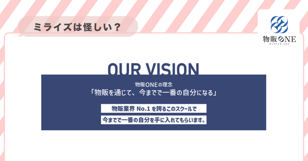つまり、物販ONE(旧ミライズ)は、ノウハウ提供だけのスクールではなく、「人生を変えるきっかけを作ること」を目的とした学びの場といえます。