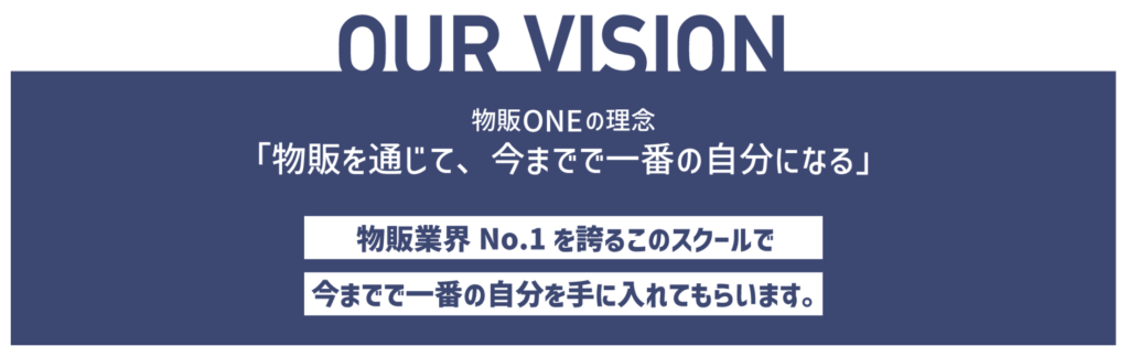 さらに現在の物販ONEでは、ビジョンとして「物販を通じて、今までで一番の自分になる」を掲げています。