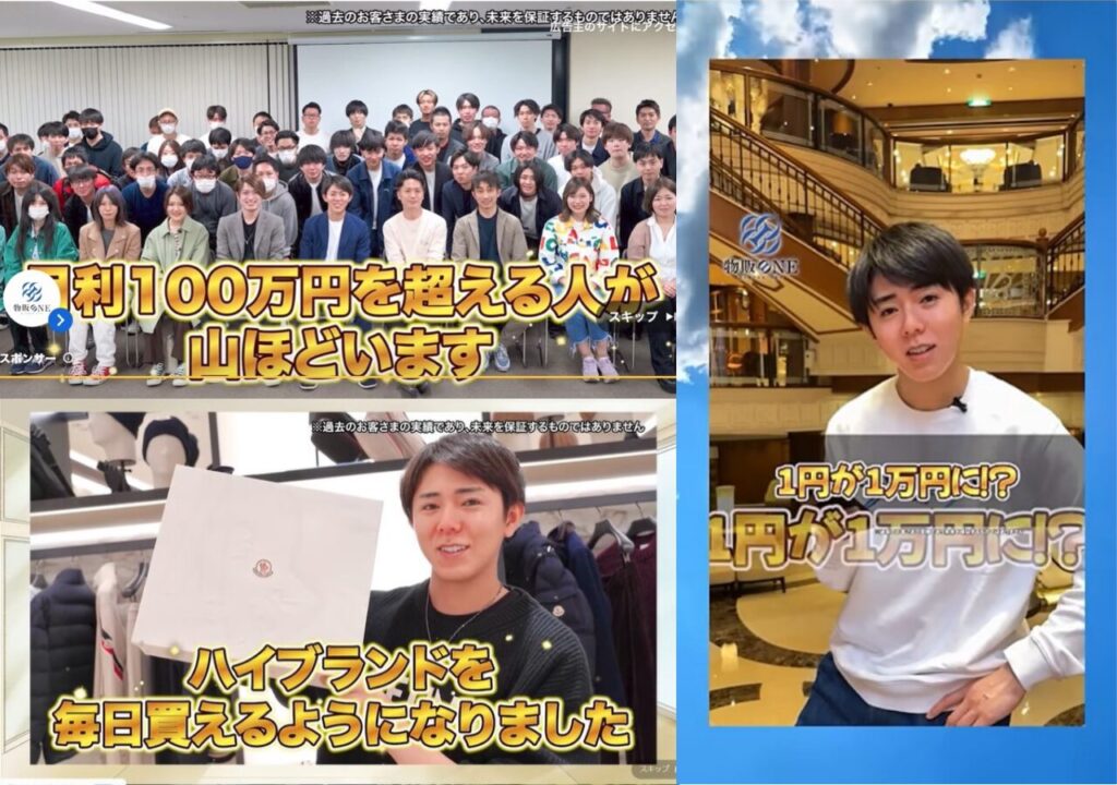 1円が1万円に!?」「ハイブランドを毎日買えるようになりました」といった強い訴求は、見る人によっては「本当にそんなに稼げるの?」と感じるきっかけになりやすいでしょう。